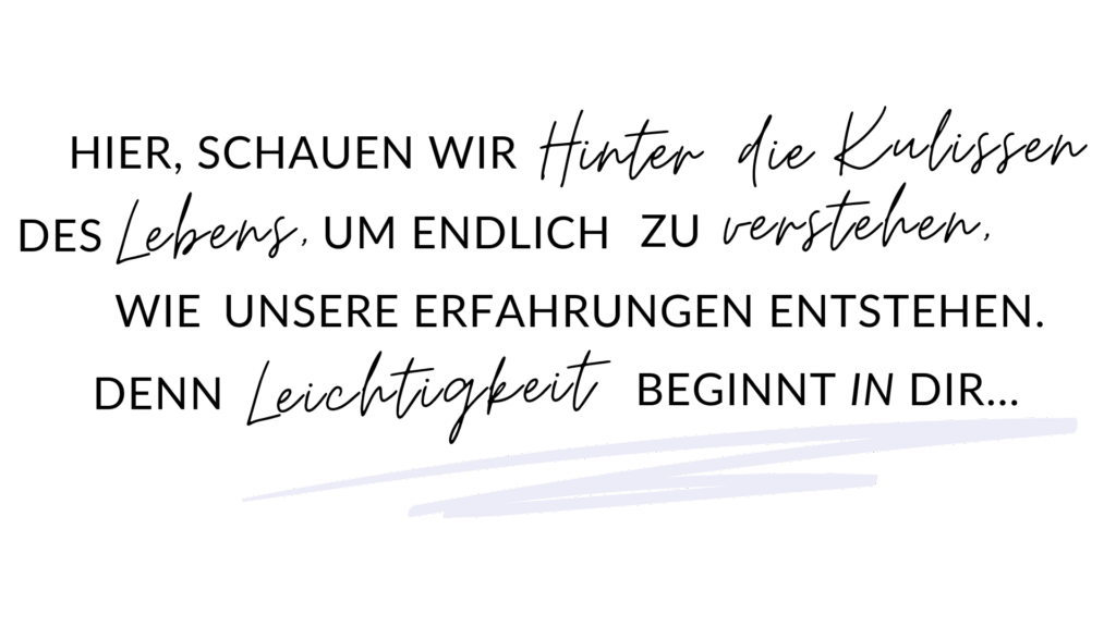 Und jetzt kommt das beste: Was für mich alles verändert hat, war nicht mehr Anstrengung, sondern zu verstehen, wie unsere Lebenserfahrung entsteht!